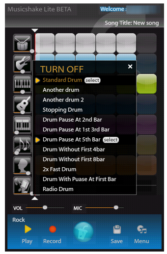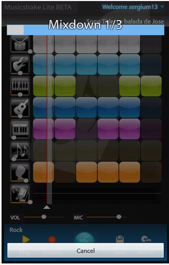 Musicshake te da la posibilidad de componer tu propia música a partir de una variada selección de instrumentos, efectos y ritmos ya preparados.